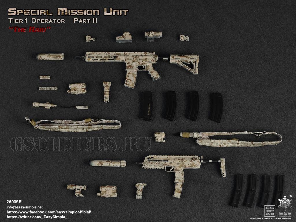 Пистолет-пулемет с обвесом и магазинами 1/6 (E&S 26009R) - EASY&SIMPLE