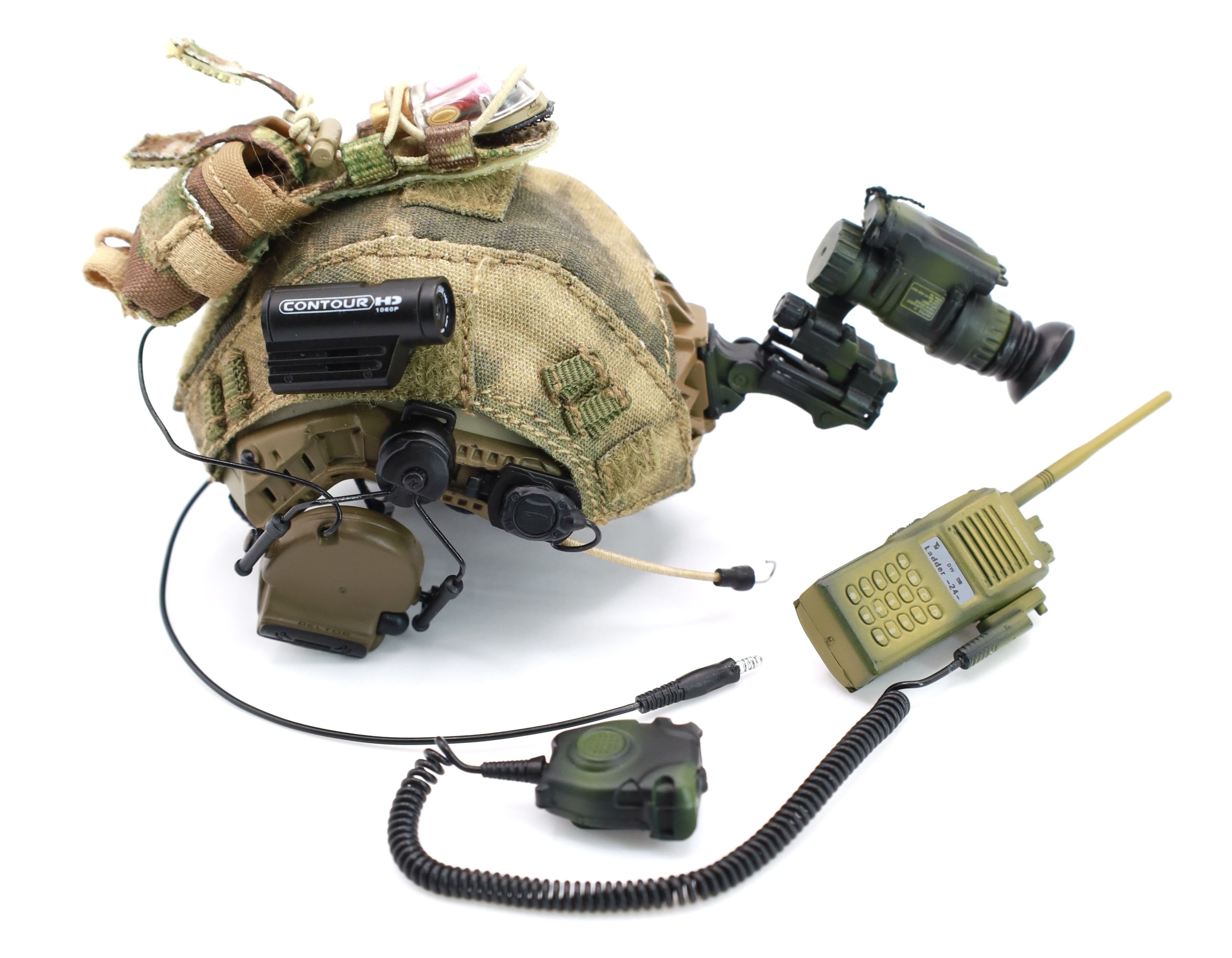 Шлем Fast с ПНВ, наушниками и радиостанцией в масштабе 1/6 (78097) - Damtoys