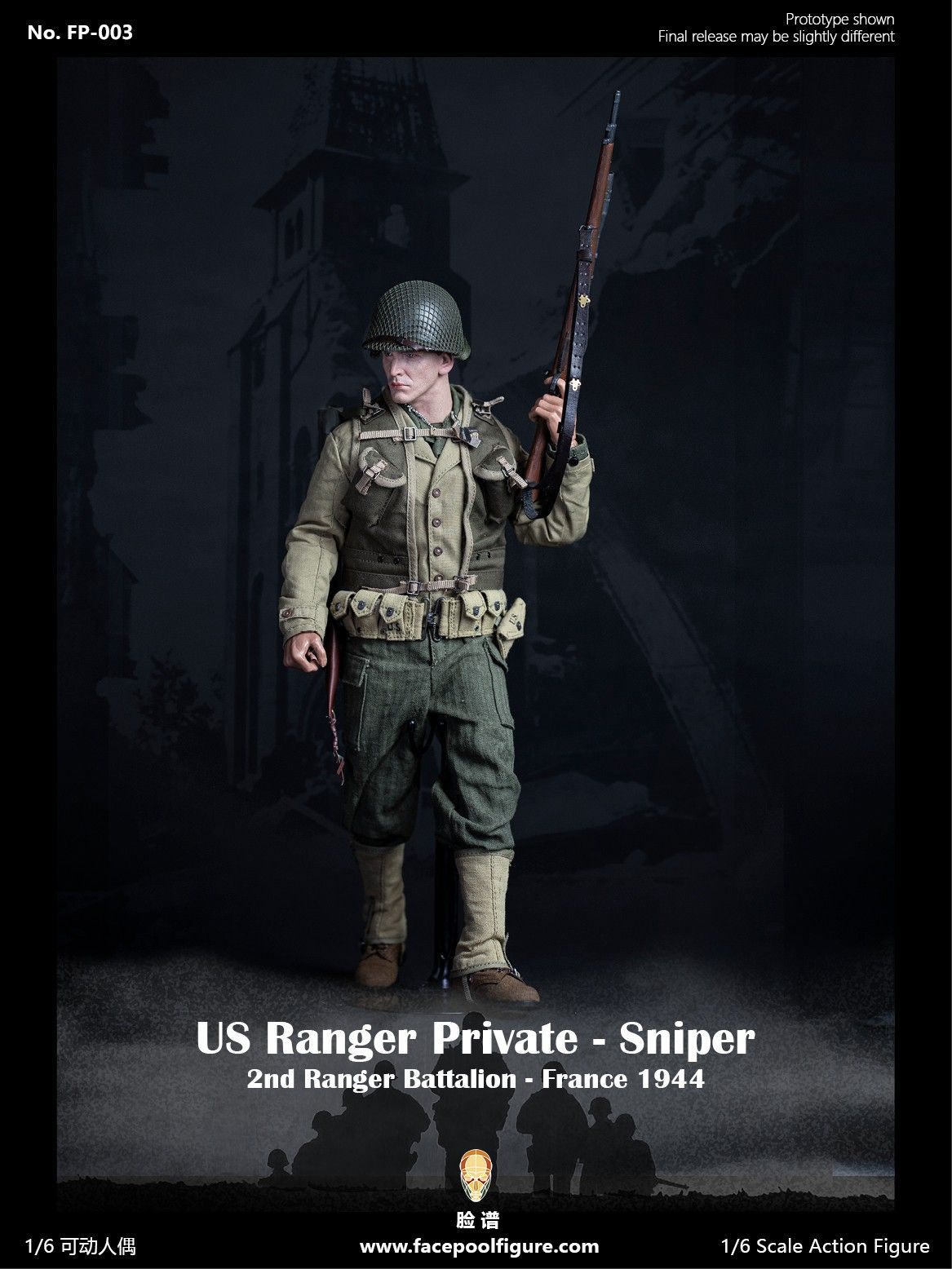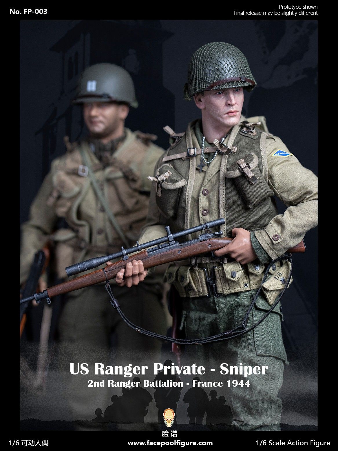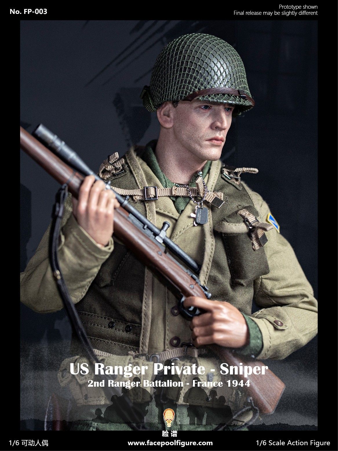 Рядовой Дэниэл Джексон (Спасти рядового Райана) - Коллекционная ФИГУРКА 1/6 scale US Ranger private sniper 2nd Ranger Battalion france 1944 (FP003A) - Facepoolfigure