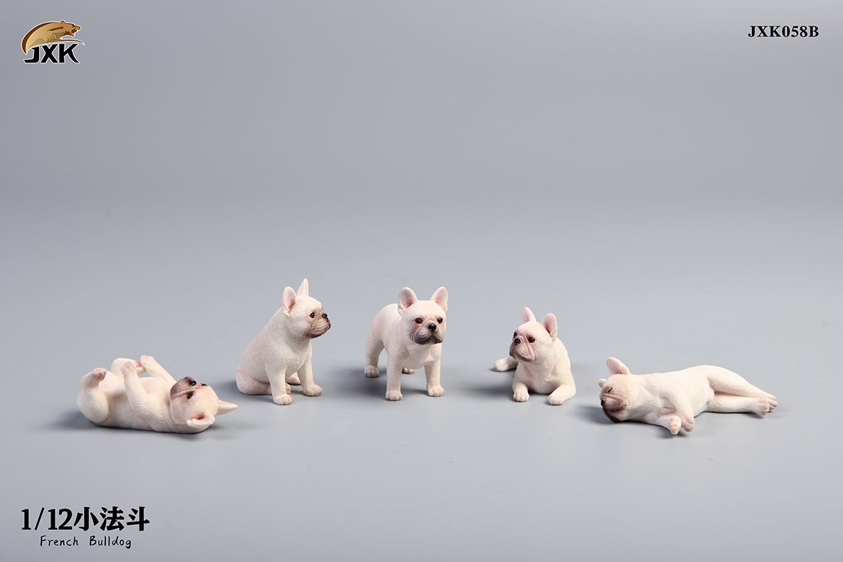 Французские бульдоги, набор из 5 фигурок (белые) - Коллекционная ФИГУРКА 1/12 scale Miniature French bulldog (JXK058B) - JXK