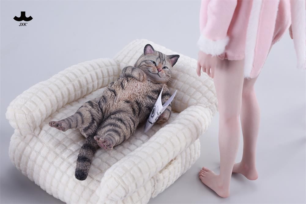 Котик на софе (серый) - Коллекционная фигурка 1/6 Lazybones Cat (JXK293A) - JXK