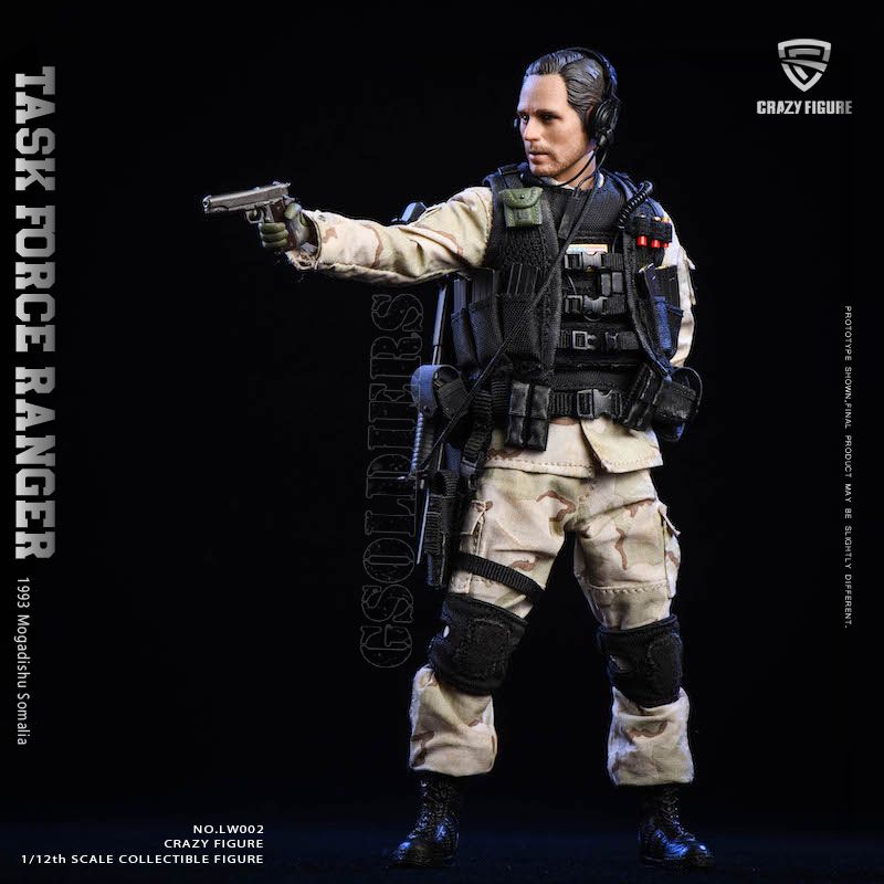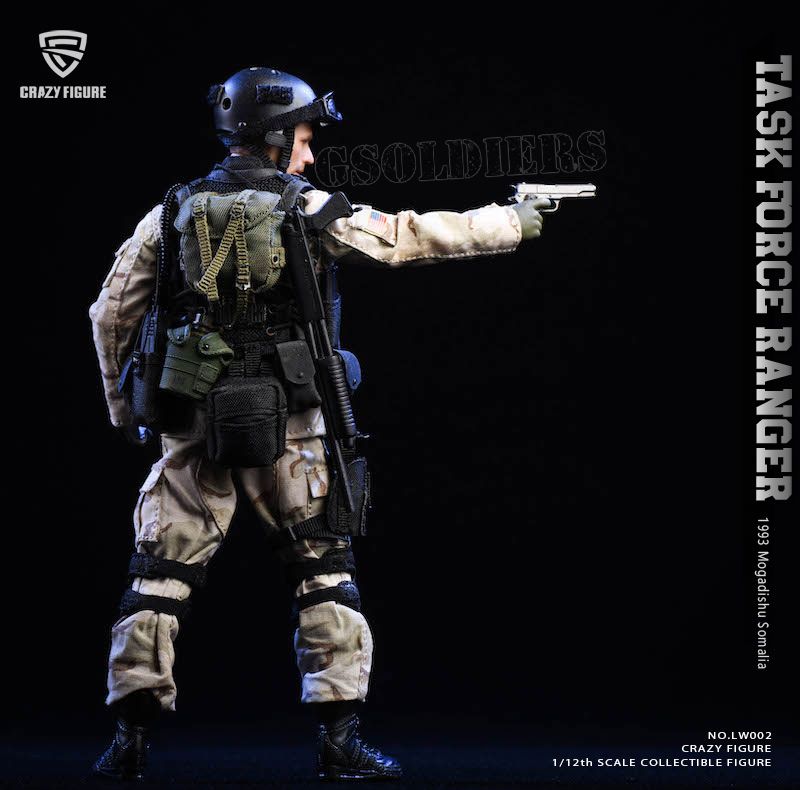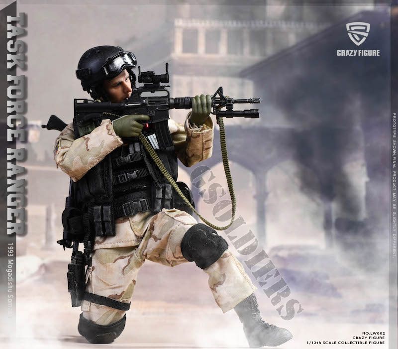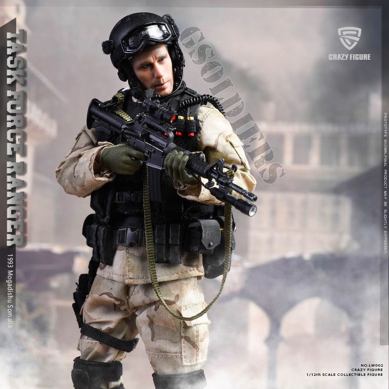Подвижная коллекционная фигурка солдата 75-го полка рейнджеров Армии США из фильма "Падение Черного Ястреба" в масштабе 1/12 - это точная реплика персонажа, выполненная с высокой степенью детализации. Фигурка имеет подвижные суставы, что позволяет создавать различные позы и демонстрировать динамичные боевые сцены.