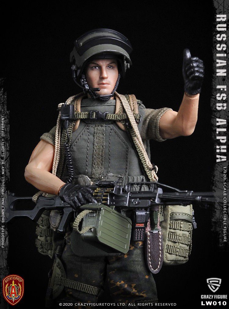 Спецназ Альфа с пулеметом - Коллекционная фигурка 1/12 scale Russian Alpha Special Forces Machine Gunner (LW010) - Crazy Figure