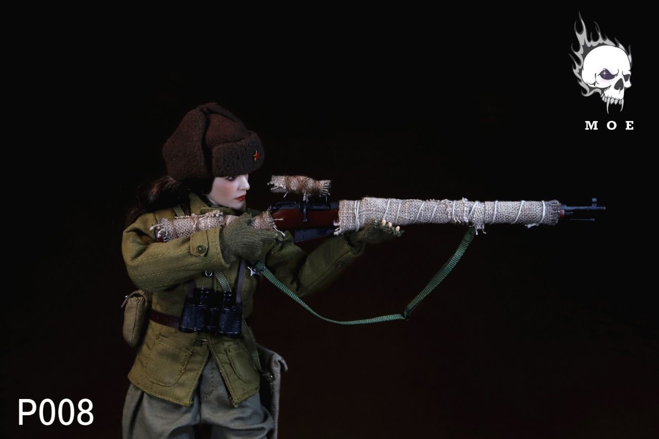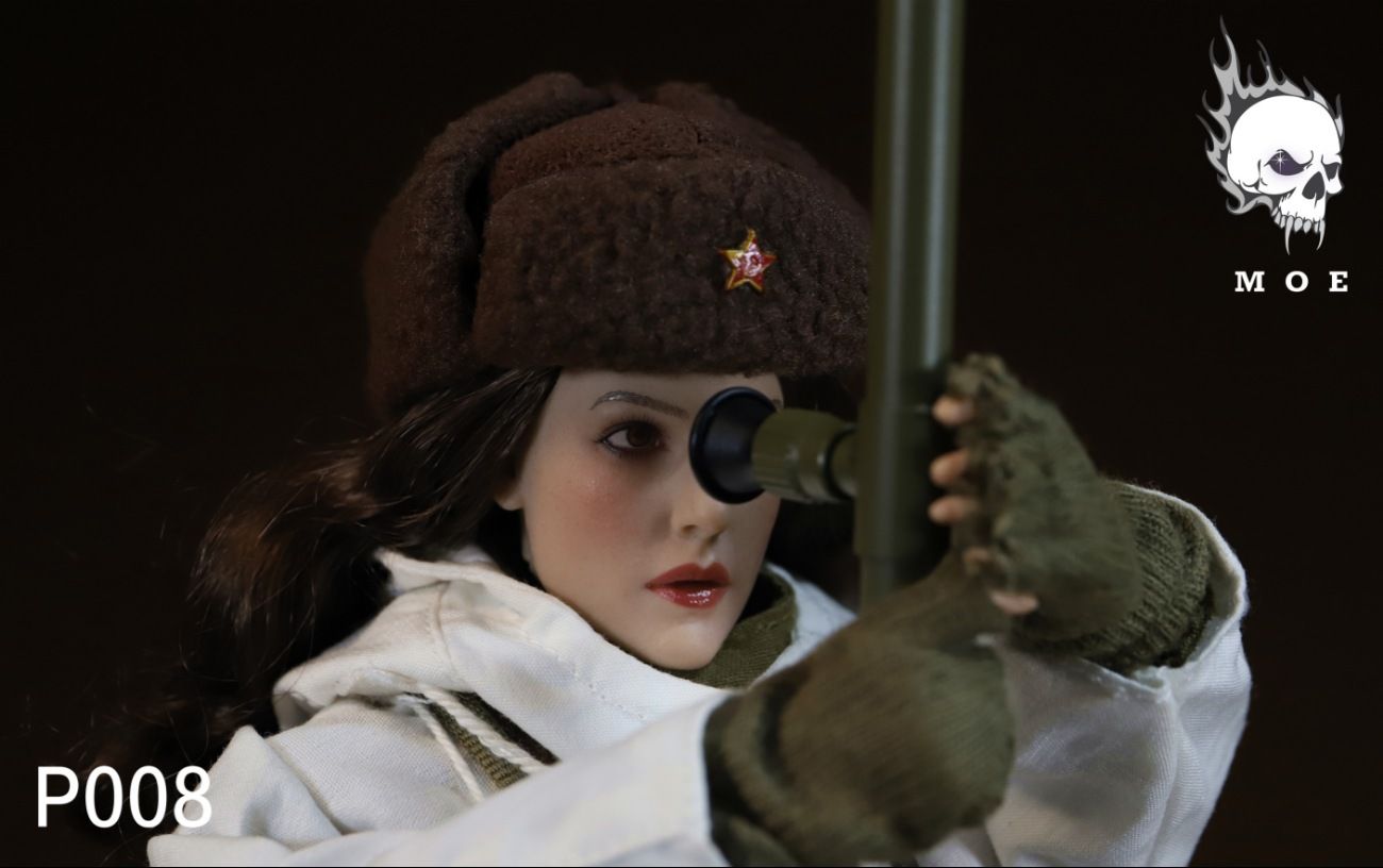 Советская женщина-снайпер в зимней экипировке - Коллекционная ФИГУРКА 1/6 scale Female sniper with snow camouflage in the Soviet Union (P008) - MOETOYS