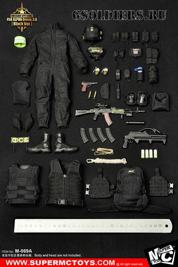 Спецназ "Альфа" - КОМПЛЕКТ ЭКИПИРОВКИ 1/6 Russian Spetsnaz - FSB Alfa Group 3.0 Black Ver. (M-069 A) - SUPER MC TOYS (БЕЗ ТЕЛА И ГОЛОВЫ)