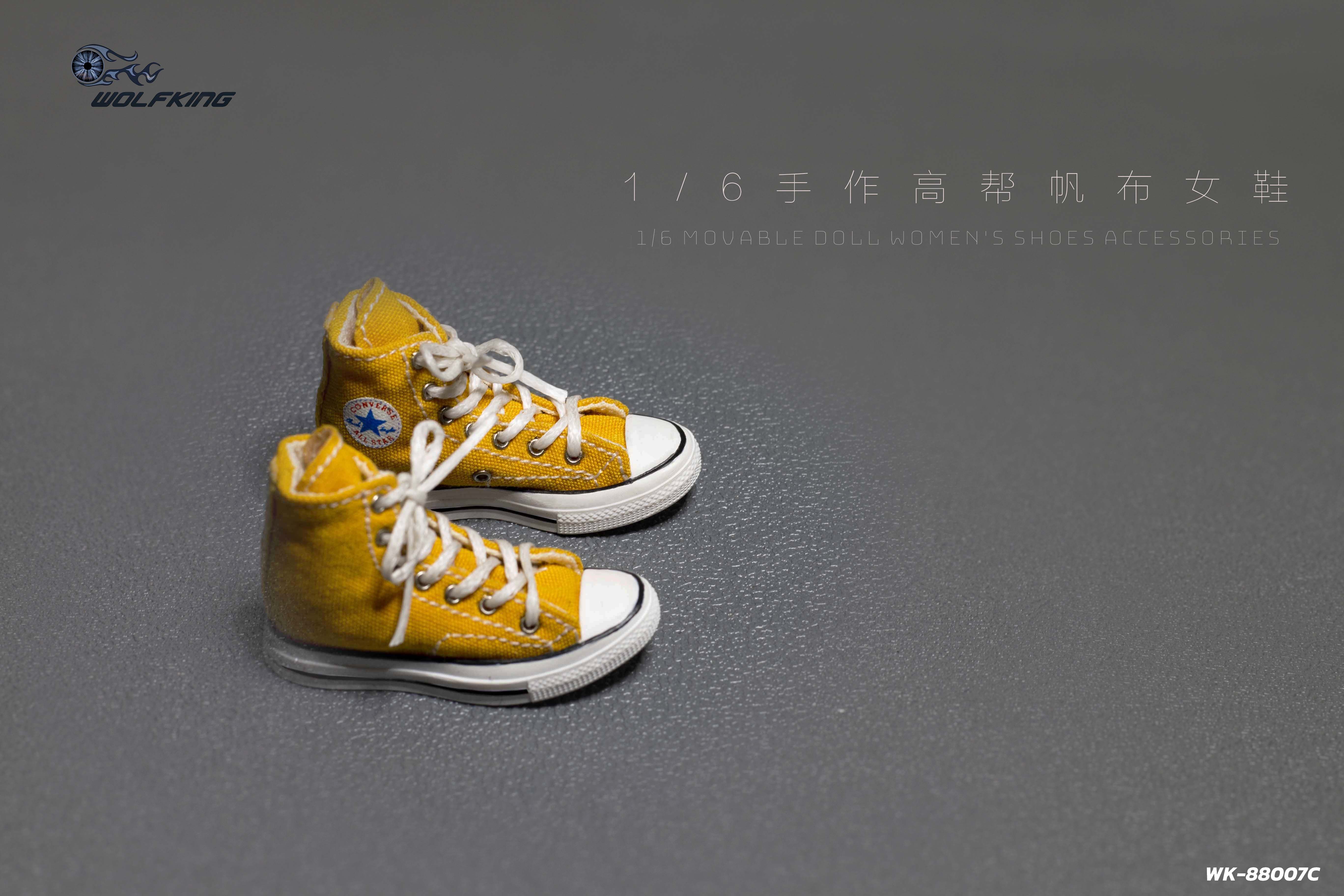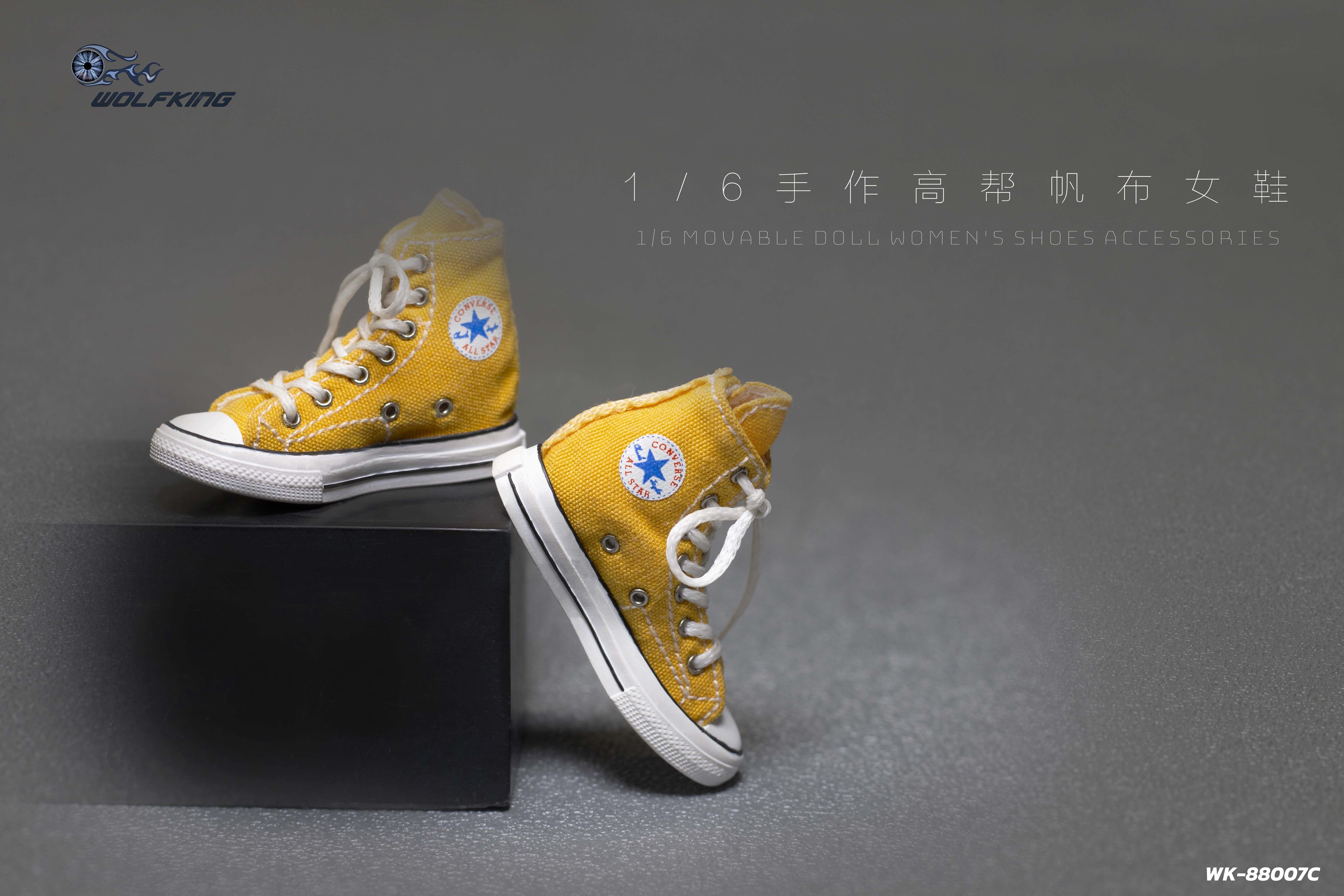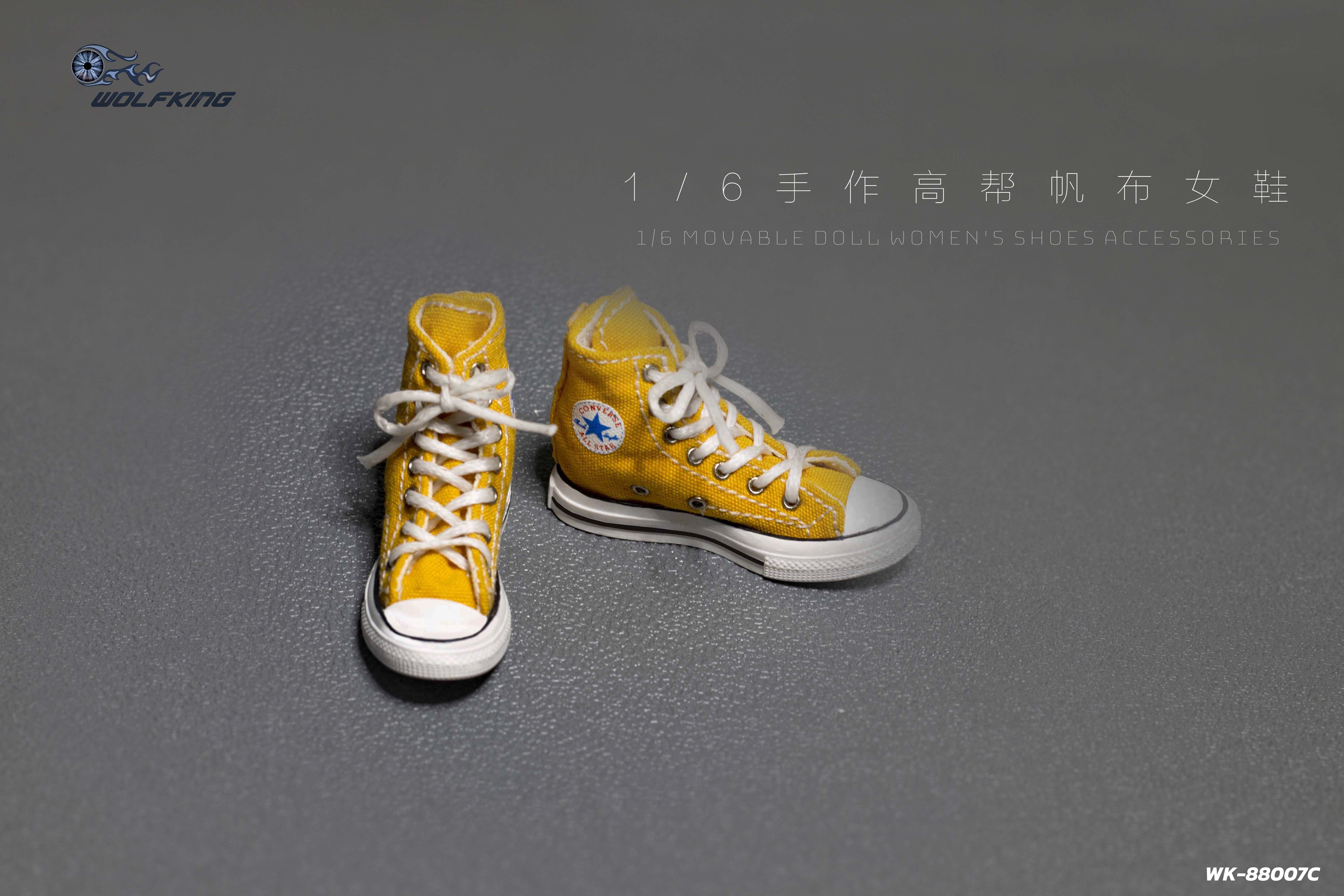 Женские кеды (желтые) 1/6 hand-made high-top canvas women's shoes (WK-88007C) - WOLFKING