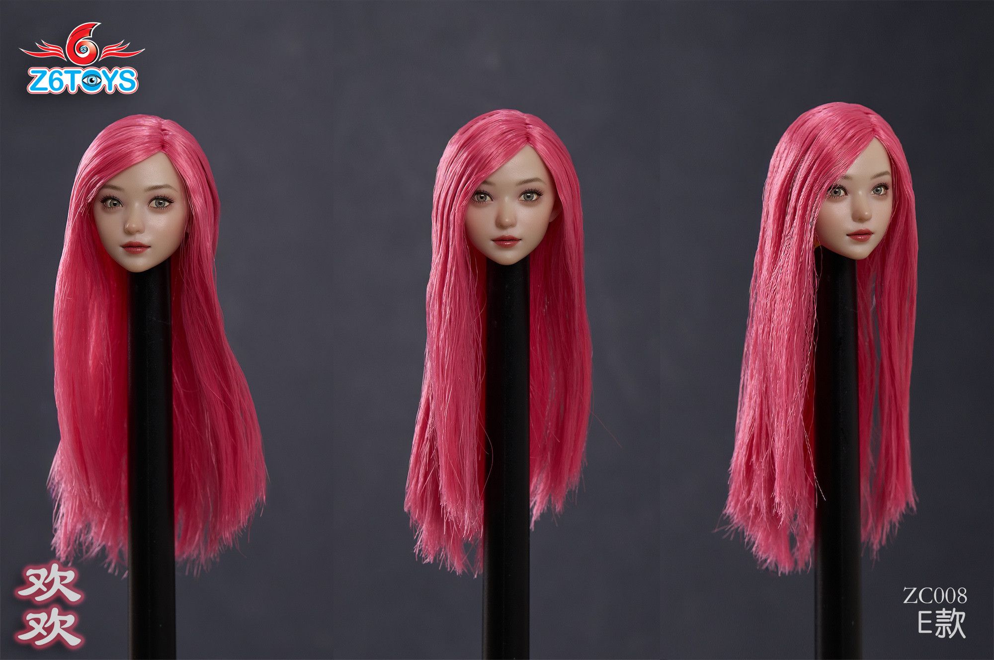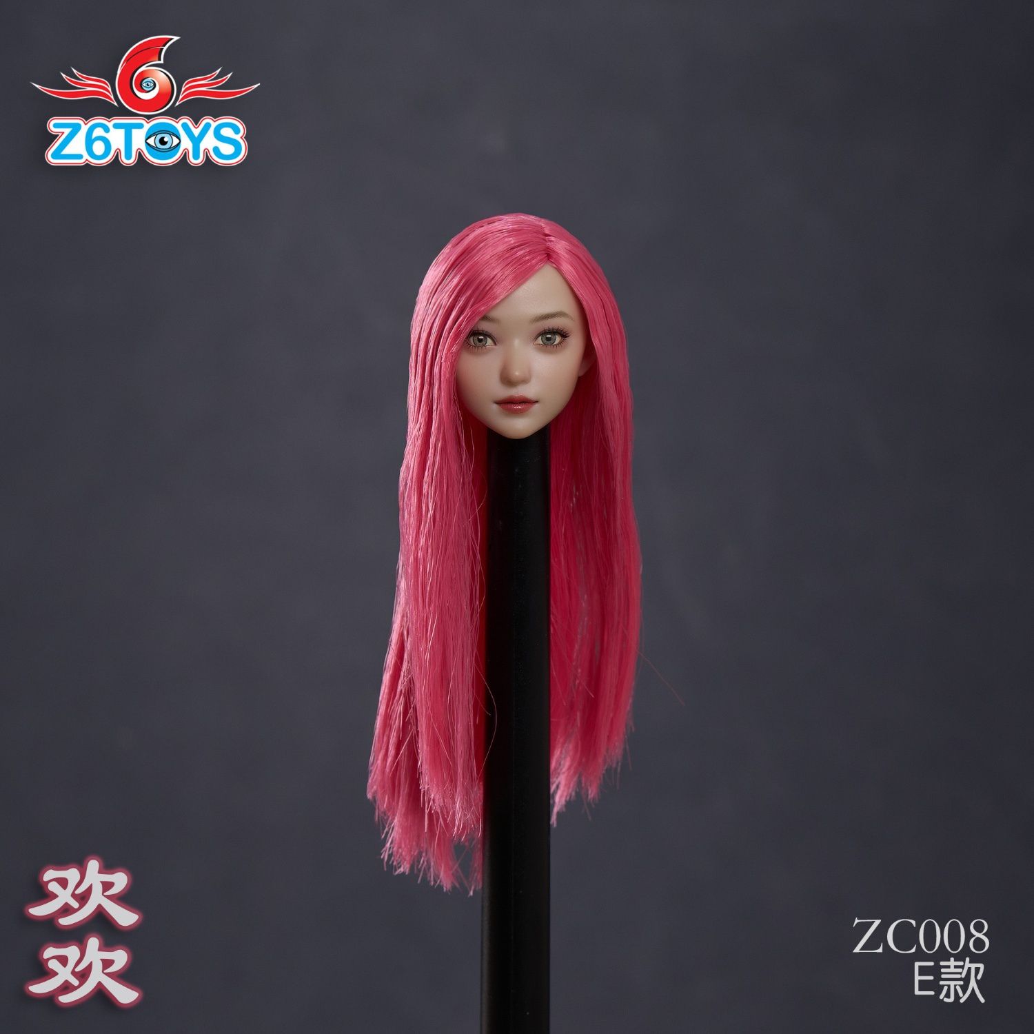 Женская голова (скульпт) с длинными розовыми волосами и подвижными глазами - 1/6 scale beautiful women with head carving and joy (ZC008E) - Z6TOYS